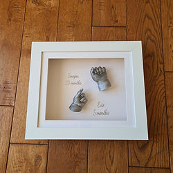 Capture the unique bond between siblings with our beautifully framed sibling casting. This unique keepsake includes 3D hand and foot castings from as many siblings as desired. Displayed in a stylish frame, all of our styles can be adapted to show off your sibling casts! Our frames are bespoke to each order, you have the freedom to create your frame. You can choose both back and front mount colours, together with the frame colour. All of this is included in the price - there are no extra charges for any of our frame colours. Each casting is carefully created to capture every tiny detail, creating a timeless treasure to display in your home or gift to a loved one.